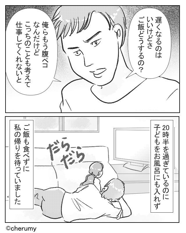 残業帰りの妻に…ダラけていただけの夫が“飯”を要求!?しかし⇒妻が完全無視…【その結果】!?
