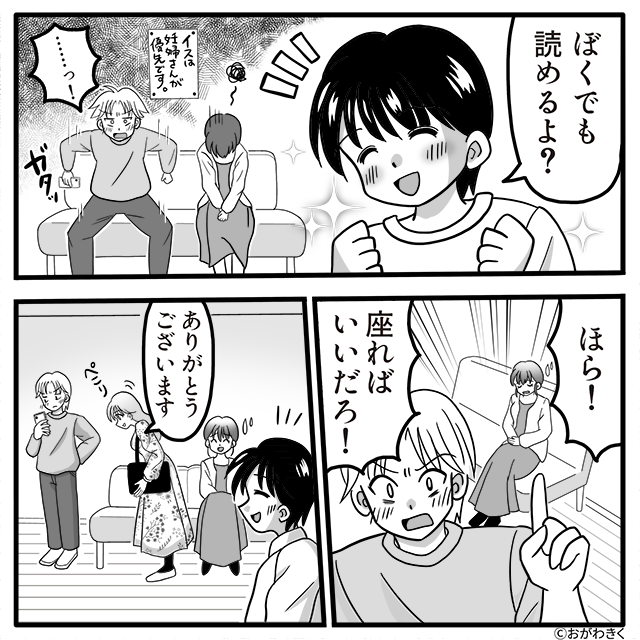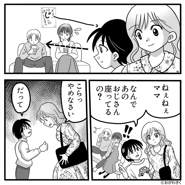 本来であれば妊婦を守るべき立場にある夫が、子どもにマナーを諭されるという状況は、考えさせられるものがありますよね。