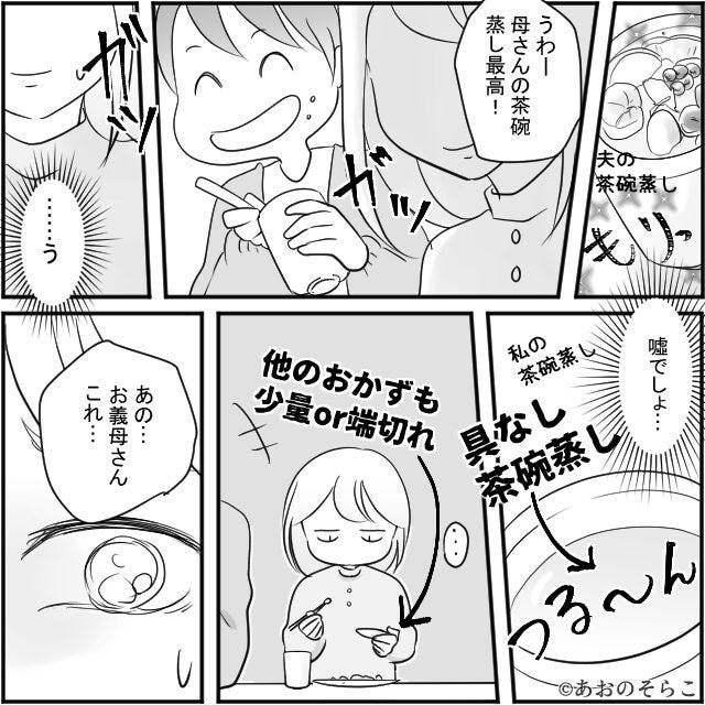 義実家で…嫁だけ”具なし”茶碗蒸しを出す義母!しかし半年後⇒義母に【嫌がらせ料理】を作り返して…逆転勝利!?