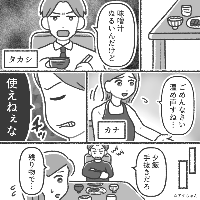 妻の料理に文句を言う夫。