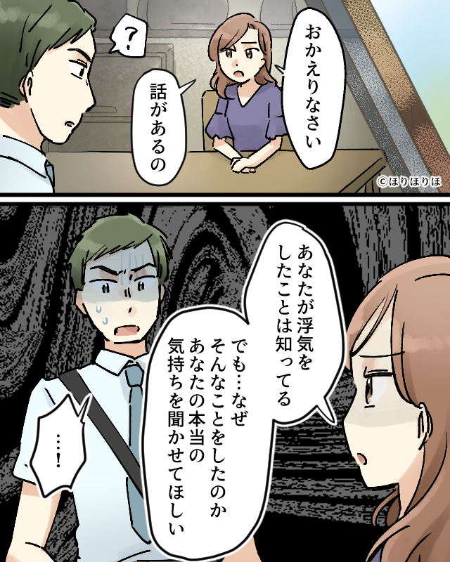 後輩と夫の浮気を知った妻。しかし⇒「聞かせて?」怒鳴らずに投げかけた【一つの質問】が、夫を変えた話