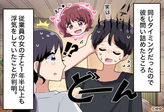 それは、従業員の女の子と1年半以上にわたって浮気をしていたという、あまりにも衝撃的な内容だったのです。