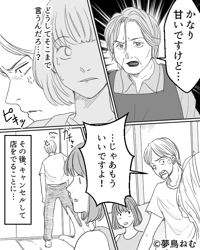 夫が「じゃあもういいですよ!」と女性の態度や言い方にキレたため注文をキャンセルし、店を出ることに。