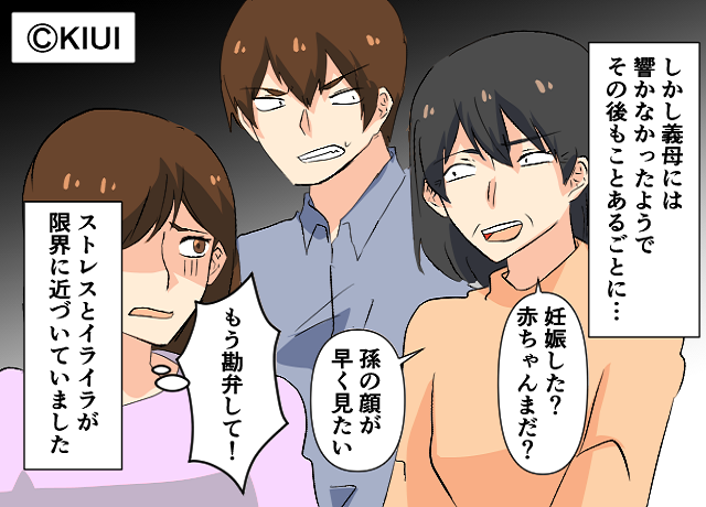 その後も「妊娠した?」「赤ちゃんまだ?」「孫の顔が早く見たい」などと言われ続けた私は、ストレスとイライラが限界に近づいていました。
