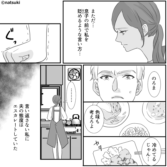 夫は子どもがいる前でも私を「のろま」と貶め「色味も考えろ」と食事にも文句ばかり。