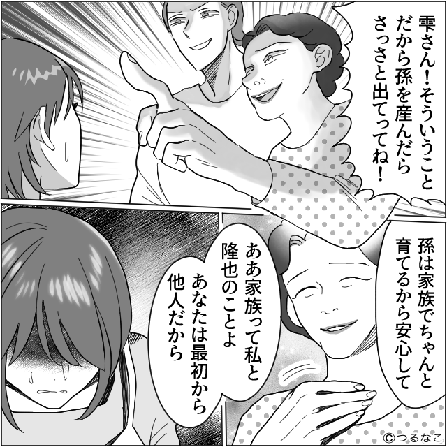 そして勝手に家に上がり込んでいた義母も夫の味方をして「孫を産んだらさっさと出ていってね!孫は私たちで育てるから安心して」と言い放ったのです。