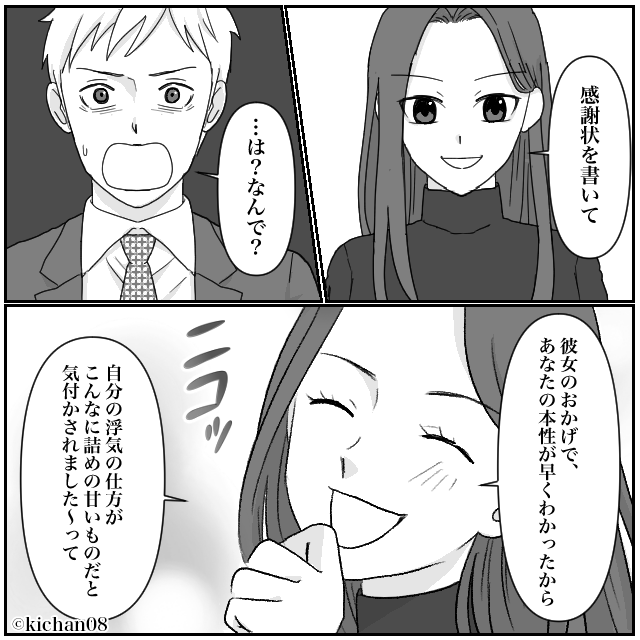 「反省してるなら、浮気相手に感謝状を書いて」と伝えたのです。
