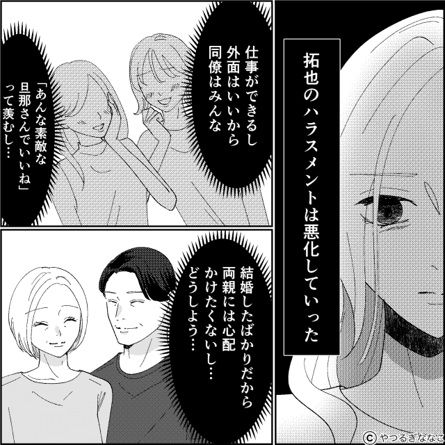 しかし、夫は外面がよく仕事もできるので同僚はこのことを知らず、自分の両親にも迷惑をかけたくなくて…。