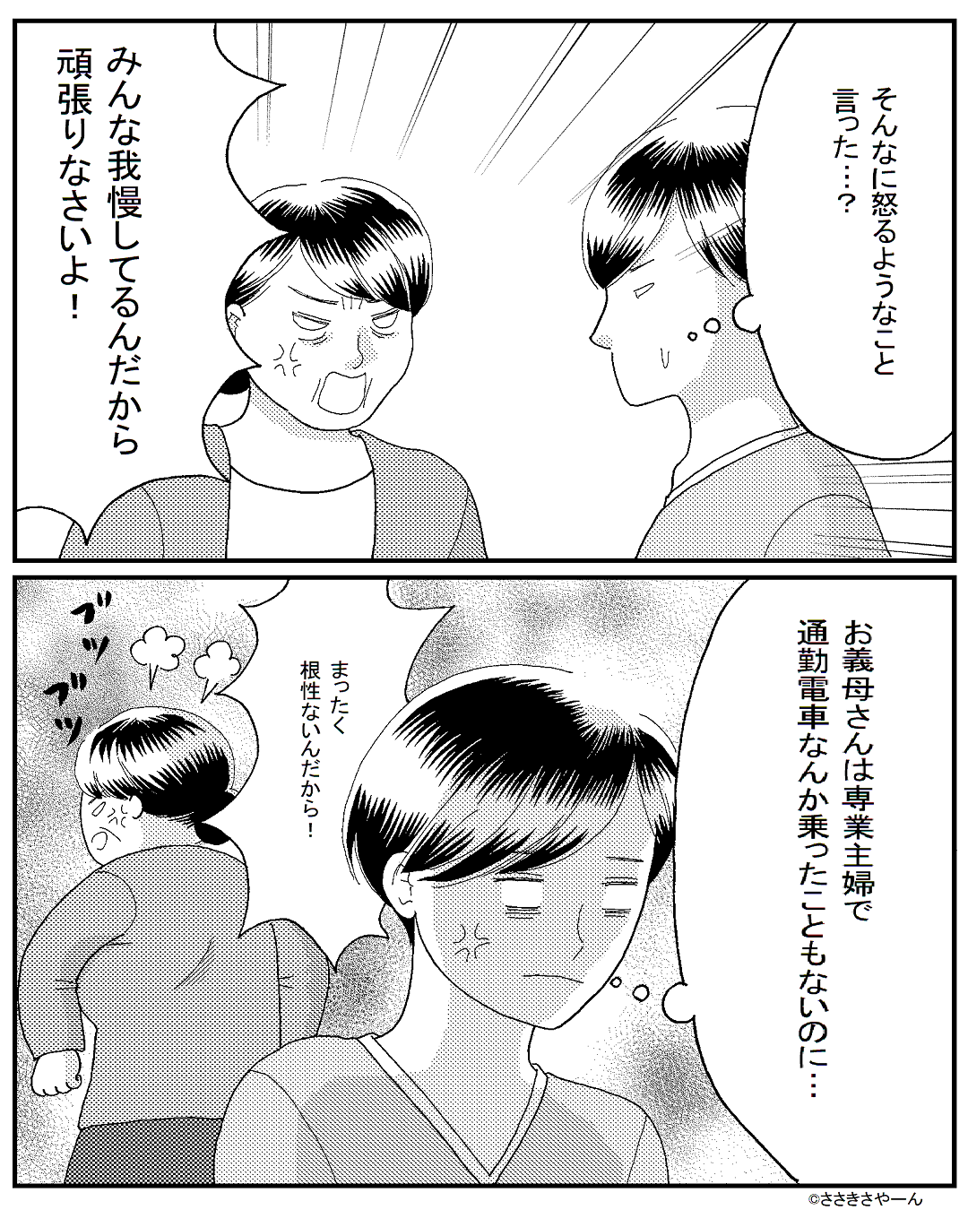 私は「お義母さんは専業主婦だから、通勤電車なんか乗ったことないのに…」と顔が怒りでこわばったのを覚えています。