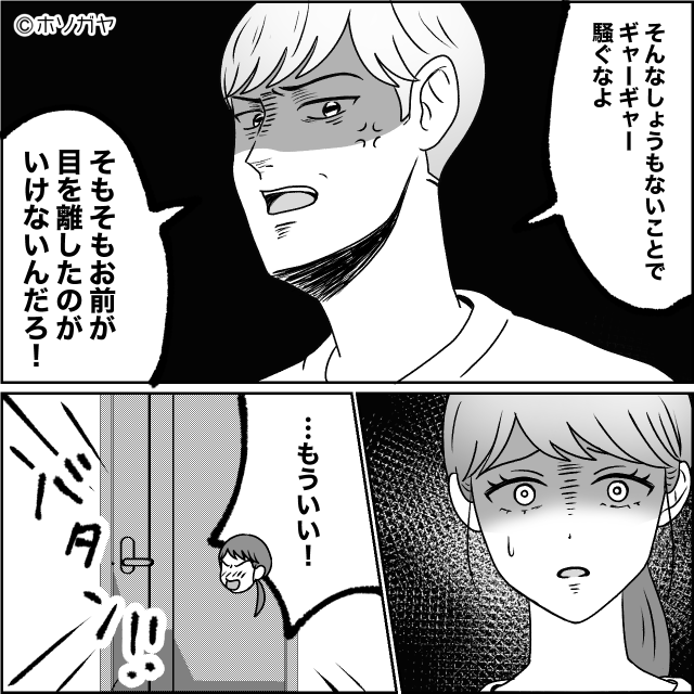 夫は「うるさいなぁ、そんなしょうもないことでギャーギャー騒ぐなよ」「そもそもお前が目を離したのがいけないんだろ!」の一点張り。