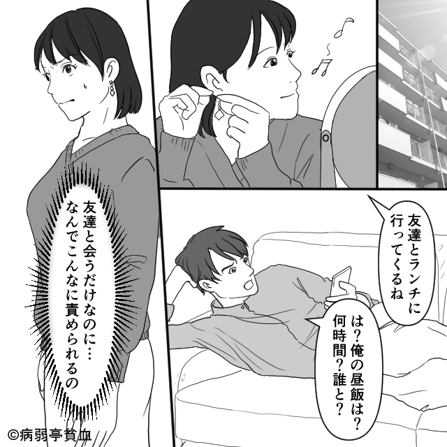「病院代がもったいない」妻の体調不良も許さない夫。後日⇒「ランチ?何時間?誰と?」行動まで制限され…妻「ねえ…」