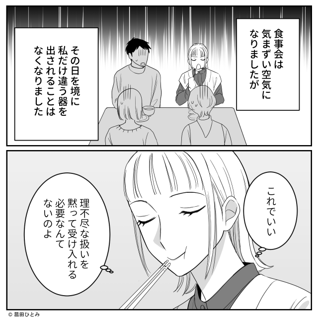 「お構いなく!」嫁にだけ”ボロボロな器”を渡す義実家で…強気な【反撃】に出ると⇒一同唖然!?