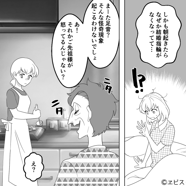 翌朝、義母に昨夜の不思議な足音や指輪が消えたことなどを話したのですが…。