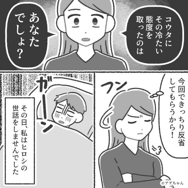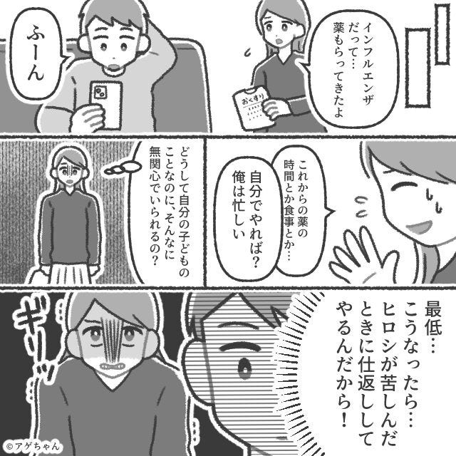 子どもが【39℃】の高熱でも「泣くな!寝とけ!」放置する夫。しかし後日⇒夫が高熱を出すと…妻が【ある報復】に出る!?