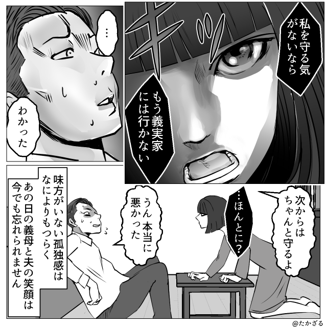 しかし、いざという場面で夫が自分を守るどころか、波風を立てないために義家族側へ回ってしまうとしたら…。