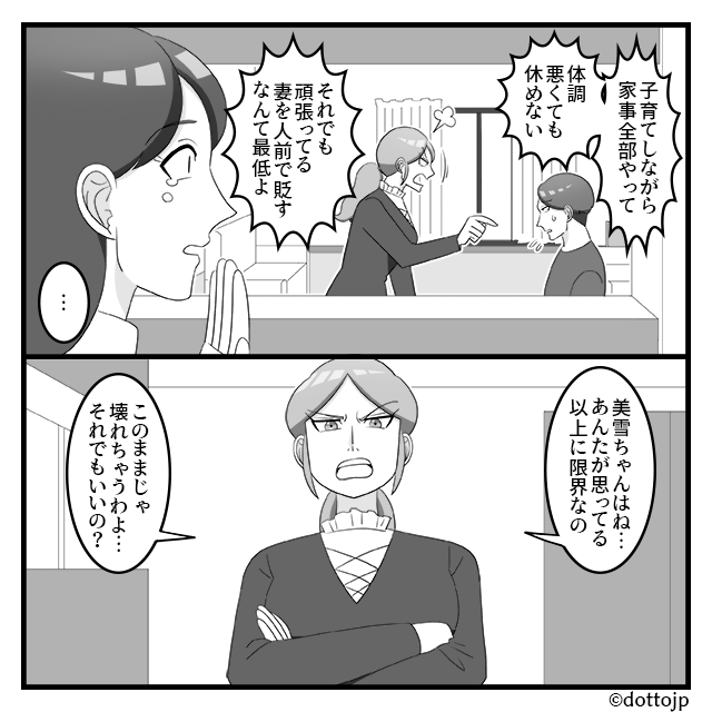 ワンオペ育児…「だらしない」妻を罵る夫。だが直後⇒黙っていた義姉が口を開き…「ちょっといいかしら」
