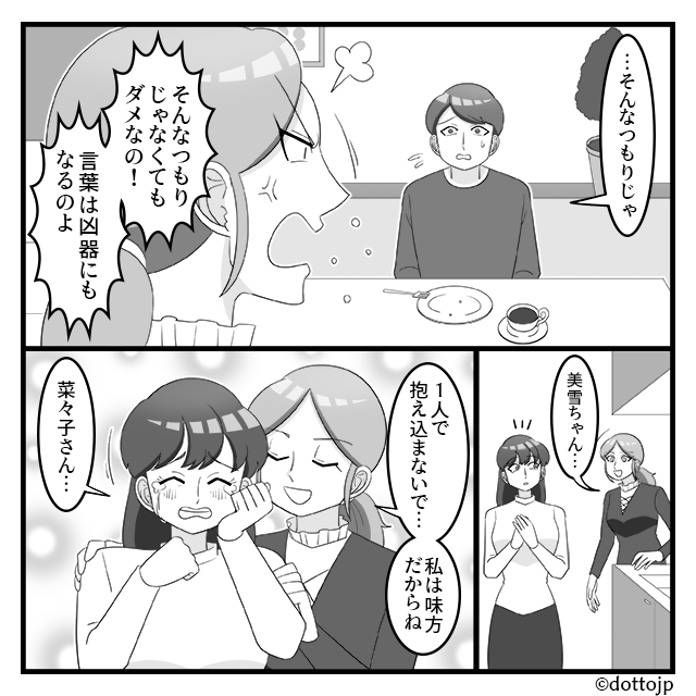 具体的な行動として、共通の知人や親族の前で夫の言動を冷静に共有してみてはいかがでしょうか。
