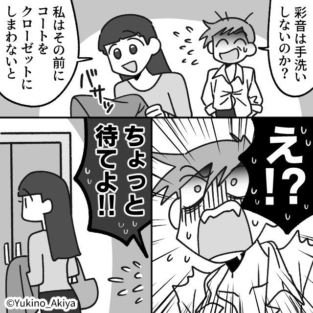 「パパー!」夫に抱きつく帰宅後の娘。だが…夫の様子に違和感!?直後「まさか…!」夫が隠す“クローゼット”を開けた結果