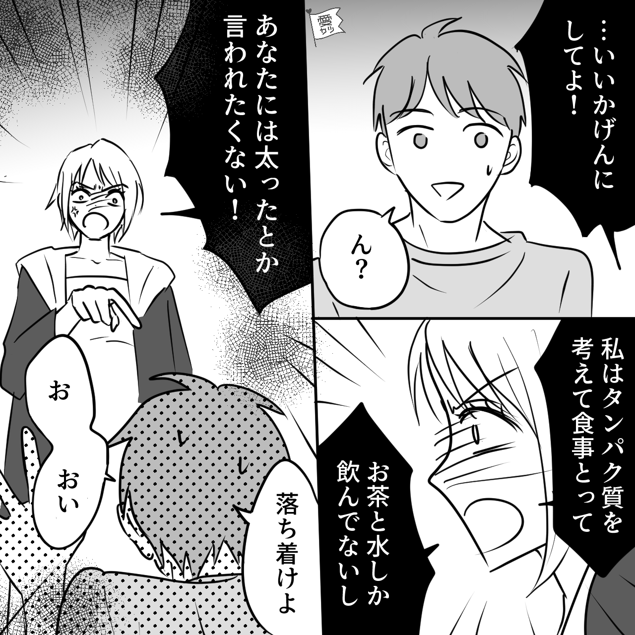 そんな夫に「私はお菓子だって控えてるのに…それであんたはなんなのよおおおおお」と追い打ちをかけました。