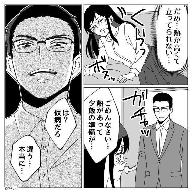 高熱でご飯が作れない妻に…夫「は?仮病だろ」しかし翌朝⇒呆れた妻が【反撃】をした結果