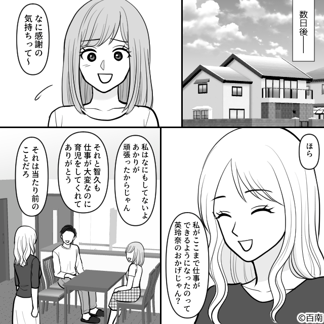 「英玲奈のおかげで、私も仕事ができるようになったし」なんて、吐き気のするような嘘を吐きながら。