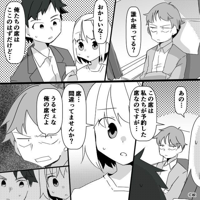 しかし切符に記載された座席番号の席に向かうと、すでに男性が座っていて…。