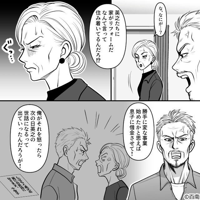 義母は勝手に変な事業を始めて夫に借金までさせようとし、それを義父に叱られた逆ギレで家を飛び出していたのです。