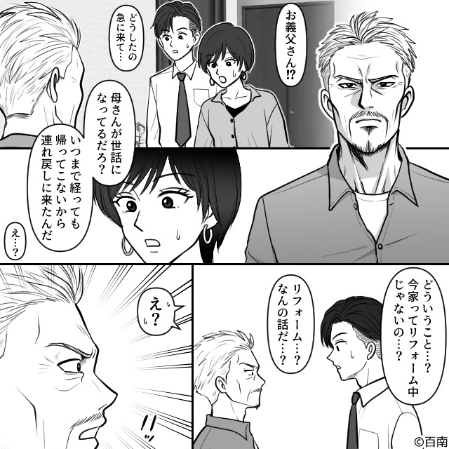 「家はリフォーム中じゃないの…?」と夫が恐る恐る尋ねると、義父の表情が一変。