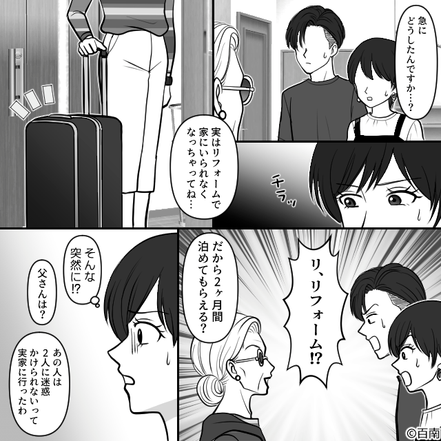 リフォーム工事を理由に【夫婦宅】に居座る義母。しかし2ヶ月後⇒義父「リフォーム?なんの話だ…?」夫婦「えっ」