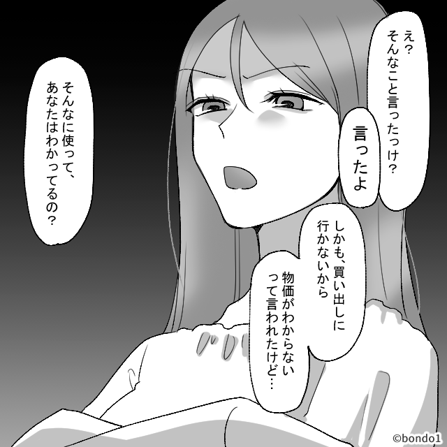 「お前は買いものに行かないから、物価がわからないんだろうな」とまで言われ私は深く傷ついたのです。
