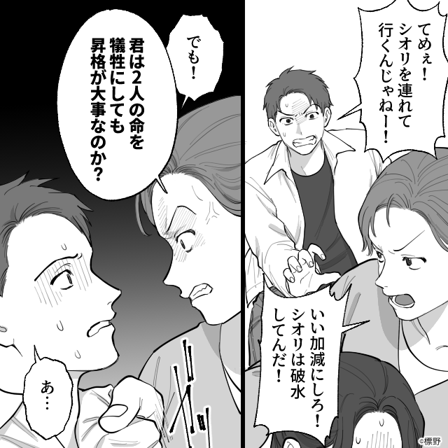 そんな夫に上司が「君は2人の命を犠牲にしても、昇格が大事なのか?」と一喝すると、夫は「あ…」とうろたえました。