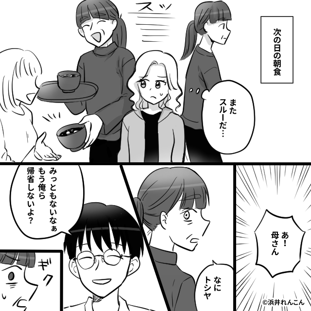 事情を知った夫は、さらに翌朝の朝食で義母が私を無視するのを見逃しませんでした。