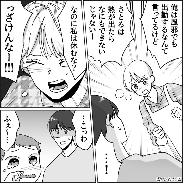 「飯さっさと作れ」“39度で”寝込む妻を叩き起こす夫。だが直後<バシッ!!>限界妻の戦略に…夫「えっ!?」