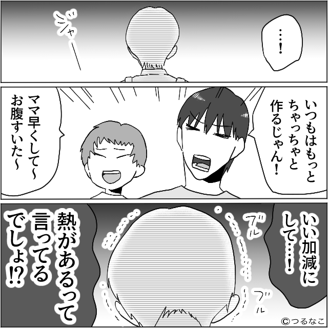 「2人とも、私のことなんだと思ってるのよ!?」唖然として固まる夫と息子。