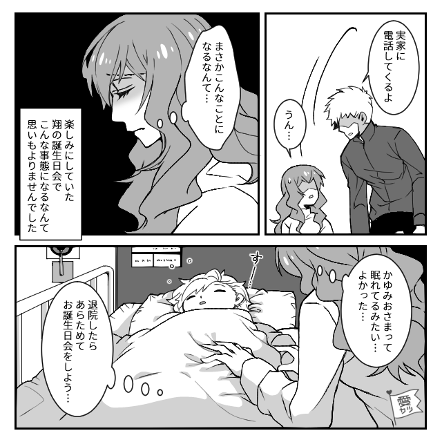 病院での処置が終わり、翔は静かに眠りにつきました。