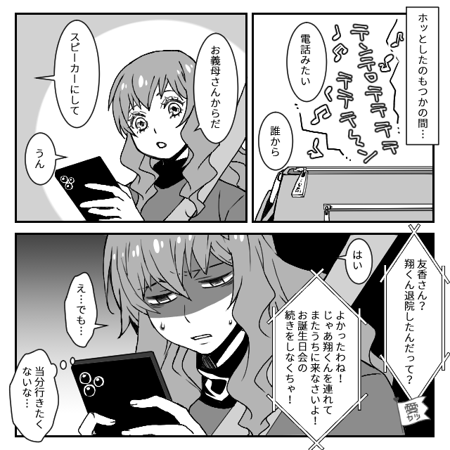 「友香さん?翔くん退院したんだって?よかったわね!」