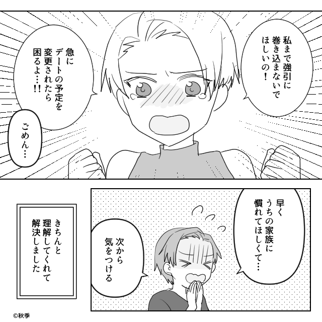 たとえば、突然の変更に対して「今はその予定に対応できない」と丁寧に拒否し代替案を提示する、あるいは「今回は予定通りデートを優先させてほしい」と冷静に伝えてみましょう。