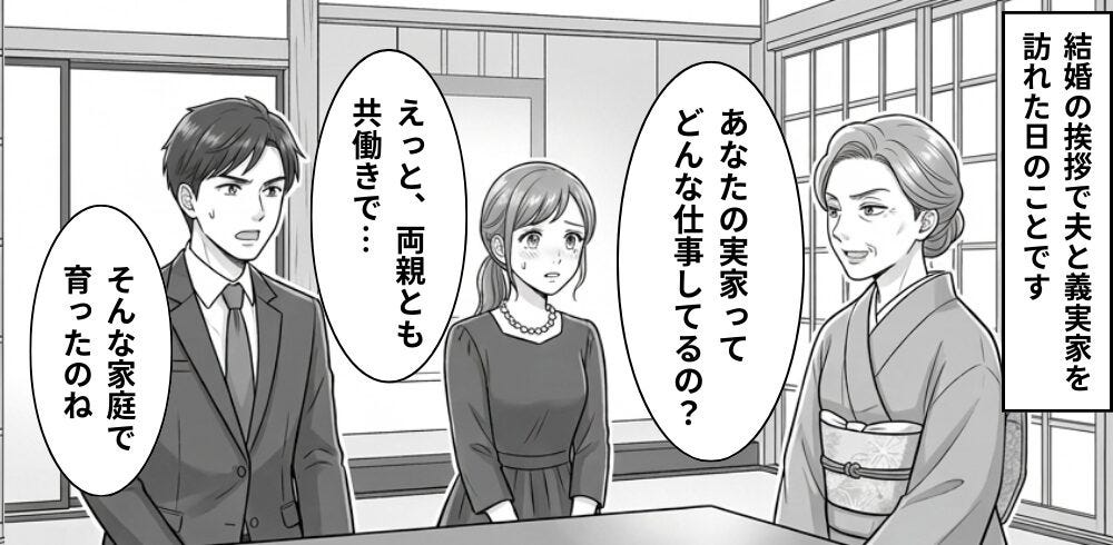 しばらく沈黙が続いたあと、義母は「あなたの実家ってどんな仕事してるの?」と詰め寄るような口調で聞いてきました。