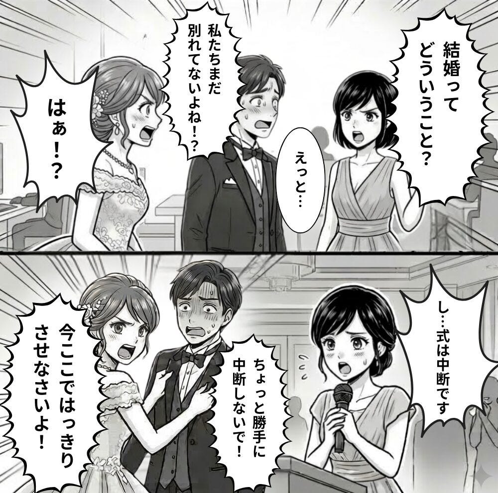 もちろん祝福ムードは完全に消え去り、会場からはひそひそ声が漏れ聞こえてきます。