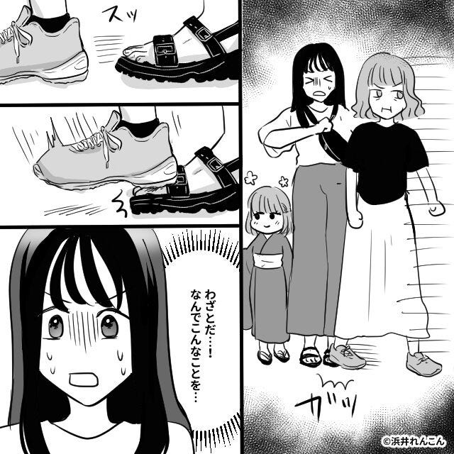 義母がかかとで、私の足を思いっきり踏みつけてきたのです。