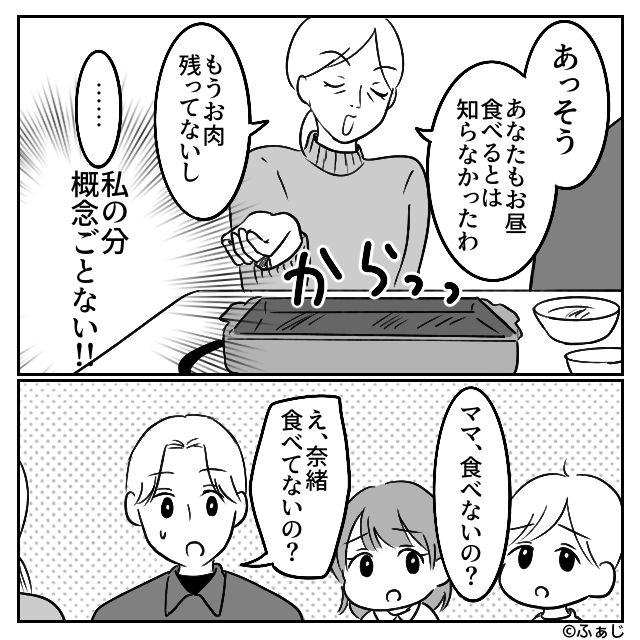 仕事中の嫁を“仲間外れ”にして焼肉を楽しむ義母。しかし次の瞬間【ニコッ】嫁の一言で、義母が凍りつく事態に…!?
