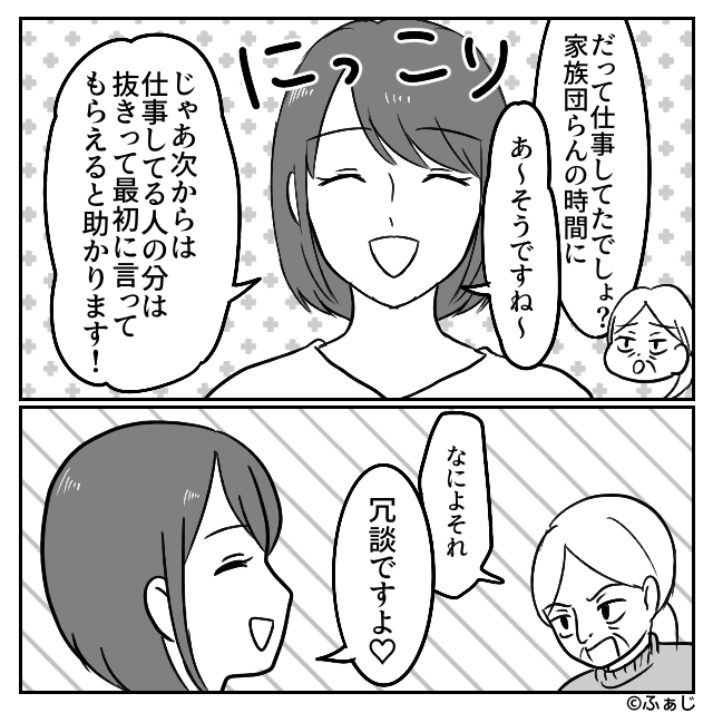それから私は「次は仕事してる人の分は抜きって最初に言ってもらえると助かります」とハッキリ伝えたのです。