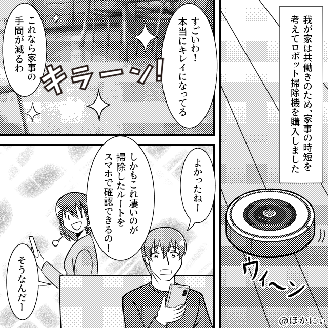新品の”ロボット掃除機”が不可解な挙動!?だが「まさか…」妻が”ある秘密”を知った話