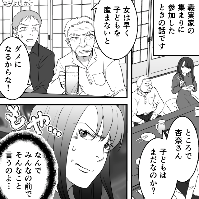 「女は早く産まないとダメ」説教する義父と嫁が口論に!?だが⇒背後で夫が“その様子”を見ていた話。
