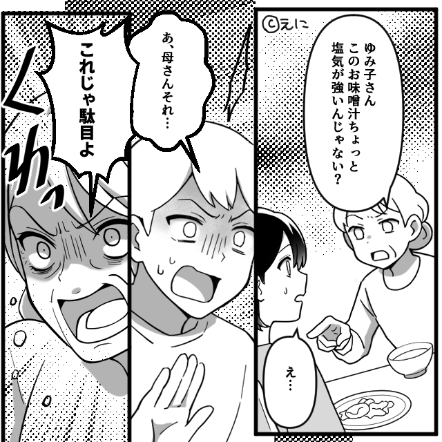 「塩気が強い」嫁の味噌汁に【ダメ出し】する義母!だが次の瞬間「あ…母さんそれ…」夫の一言で、義母が青ざめた話