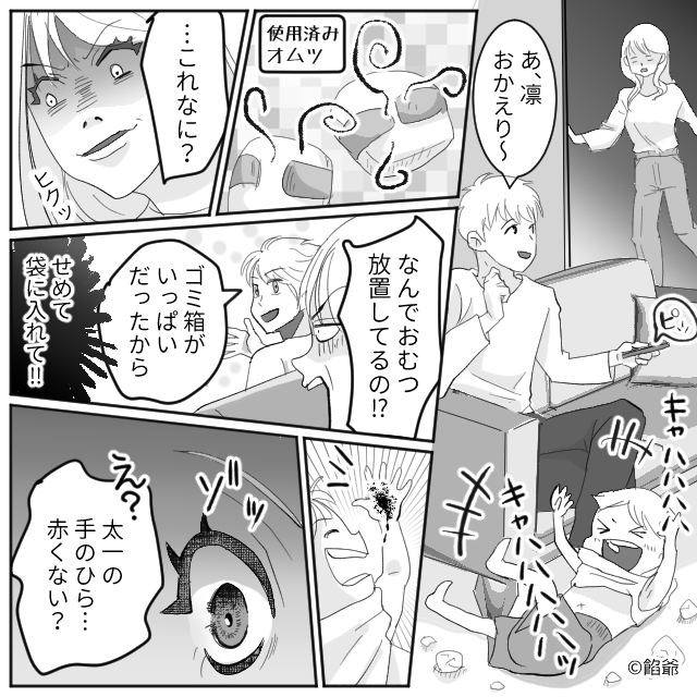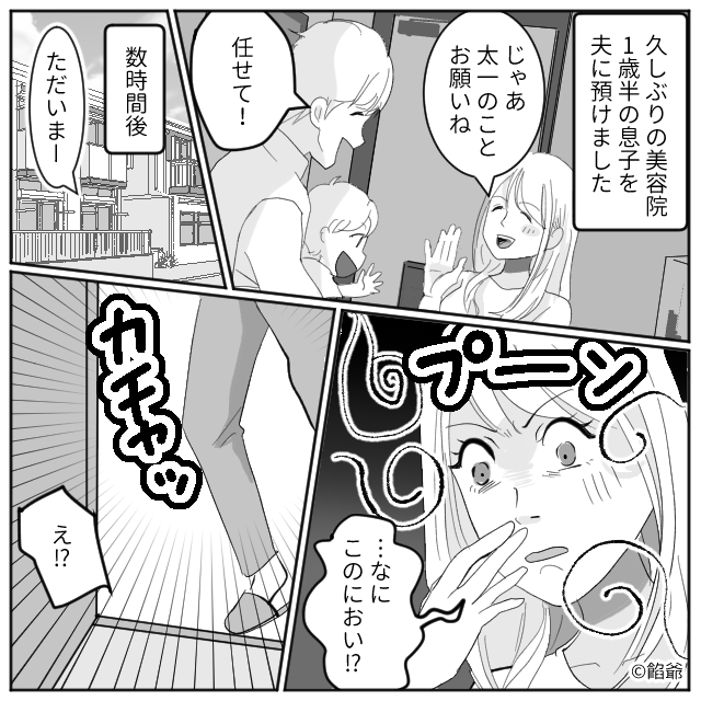 1歳半の息子を夫に預け、美容院へ!しかし帰宅後【プーン】異臭!?すると⇒妻「息子の手のひら…赤くない?」