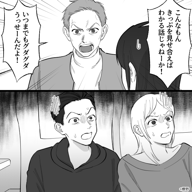 男性は不穏なことを言いながら立ち上がり、夫に詰め寄ります。
