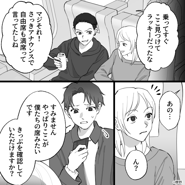 どうやら彼らは指定席をとろうともせず「空いている席を見つけたからラッキー」と勝手に座り込んだようなのです。