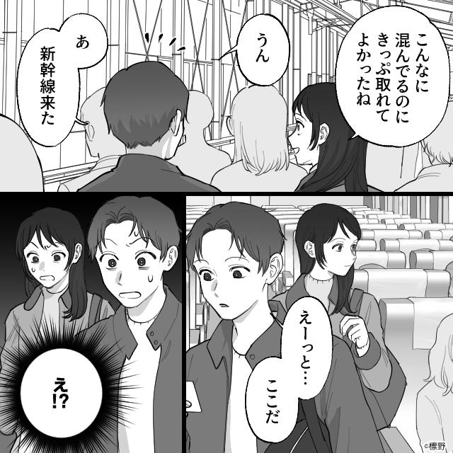 夫婦で帰省するため新幹線の指定席に向かうと、そこには見知らぬカップルの姿。