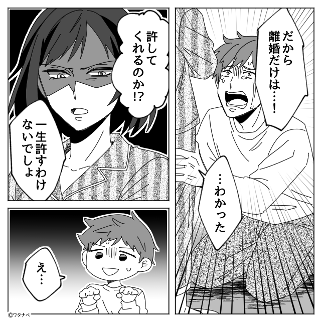 浮気夫「離婚だけは…!」号泣謝罪で“許された”と思った夫。だが直後⇒「え…」妻に一本取られた話